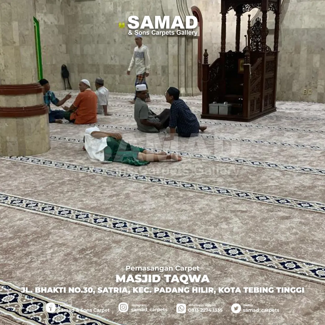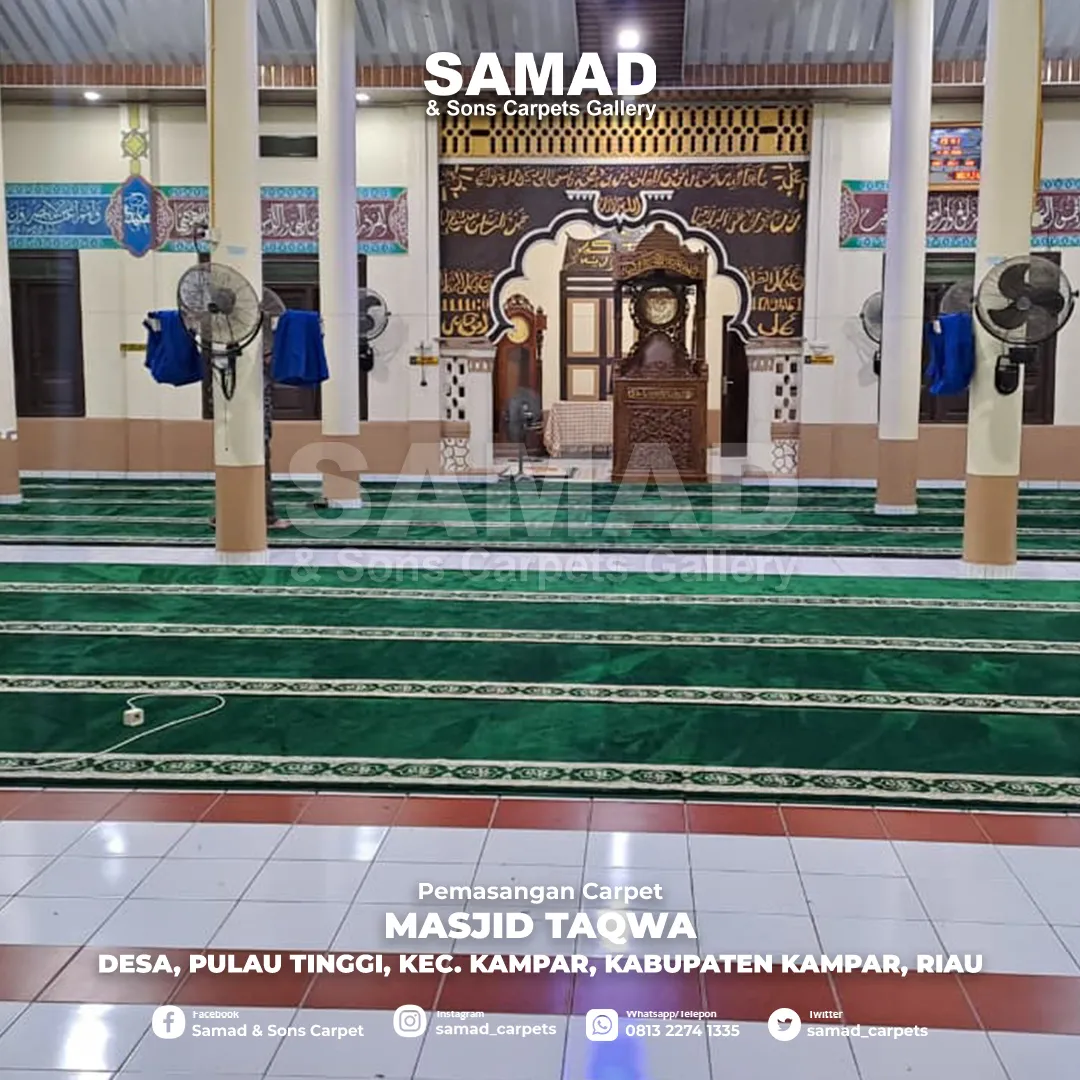 Samad Carpets menghadirkan solusi karpet masjid terbaik dengan pemasangan profesional di berbagai masjid. Dari desain elegan hingga kenyamanan maksimal, setiap proyek kami dirancang untuk meningkatkan kualitas ibadah. Lihat hasil karya kami dan temukan inspirasi untuk masjid Anda!